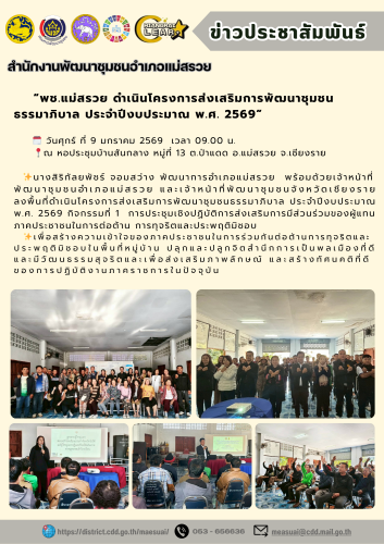 พช.แม่สรวย ดำเนินโครงการส่งเสริมการพัฒนาชุมชนธรรมาภิบาล ประจำปีงบประมาณ พ.ศ. 2569