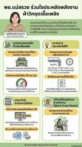 สพอ.แม่สรวย พร้อมเป็นต้นแบบในการใช้พลังงานอย่างรู้ค่าและมีประสิทธิภาพ เพื่อร่วมกันก้าวผ่านวิกฤตพลังงานครั้งนี้ไป